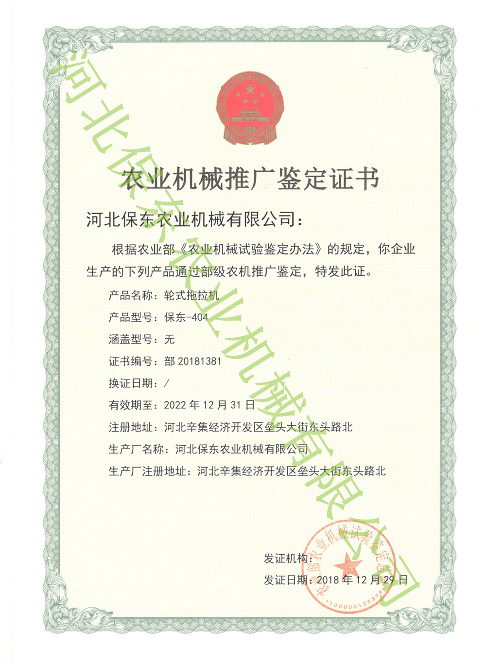 河北保东农业机械有限公司成立于2006年,坐落于“中国皮都”河北省辛集市,地理位置优越,来往交通便利。于2018年斥资3000万在辛集市省级技术开发区兴建新厂,建筑面积占地两万平方,并正式启用。同年被定为“2018辛集重点项目”,设有一套完整的装配流水线,并规范各项管理制度,从源头上保证了产品的质量、交货期和故障率。
